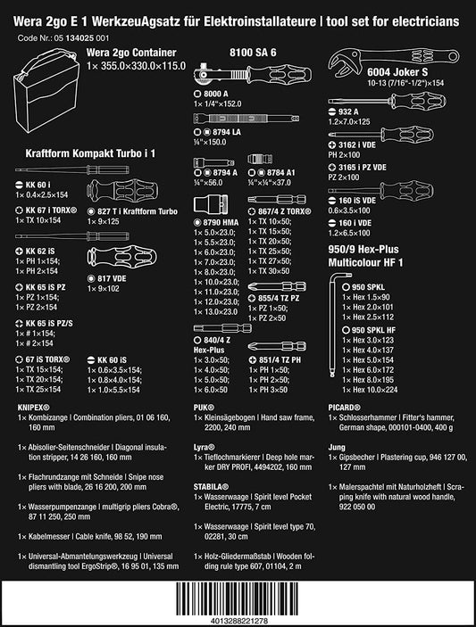 Set di utensili per elettricisti 73 pezzi Wera 2go E1 rif.134025
