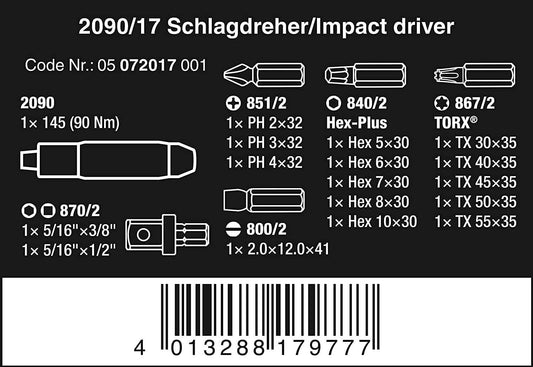Set di cacciaviti 90Nm 17 pezzi 2090/17 Wera 072017