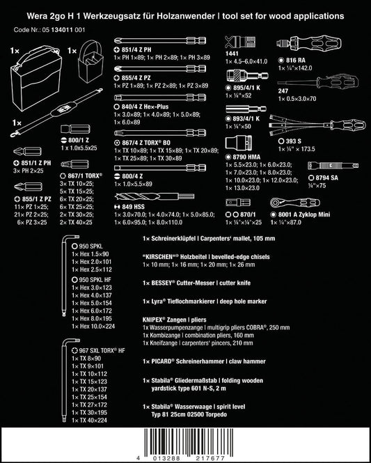 Set di utensili per la lavorazione del legno 134 pezzi Wera 134011