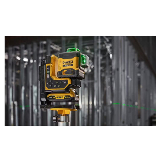 Nivel láser autonivelante Verde con control remoto de 3 lineas 360º XR 18V + Bateria 2Ah + Cargador Dewalt DCLE34035D1