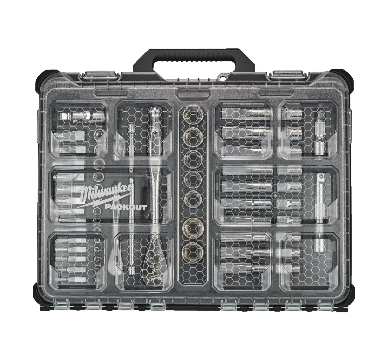 El Juego de 63 piezas con vasos y carraca de 1/4″ y 1/2″ de Milwaukee es un set integral de herramientas de mano pensado para mecánicos, técnicos y profesionales que necesitan una solución completa de carracas y vasos métricos, organizada de forma compacta y transportable. El set viene presentado en un organizador Slim compacto compatible con el sistema modular PACKOUT™, permitiendo un almacenamiento ordenado y una integración con otros módulos PACKOUT.