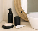 Elegante portacepillos de baño de diseño minimalista en poliresina negro mate, ideal para mantener tus cepillos de dientes y accesorios de higiene organizados con estilo en cualquier lavabo o encimera.