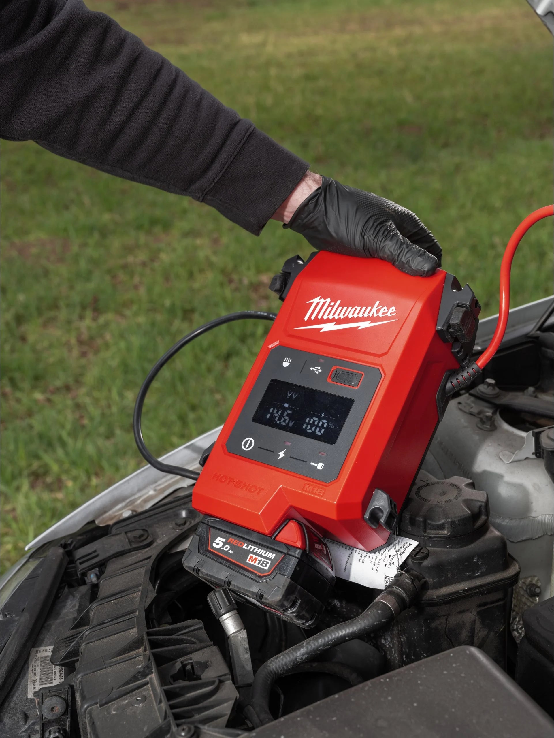 • Capacidad de hasta 50 arranques con una sola batería M18 5.0 Ah.