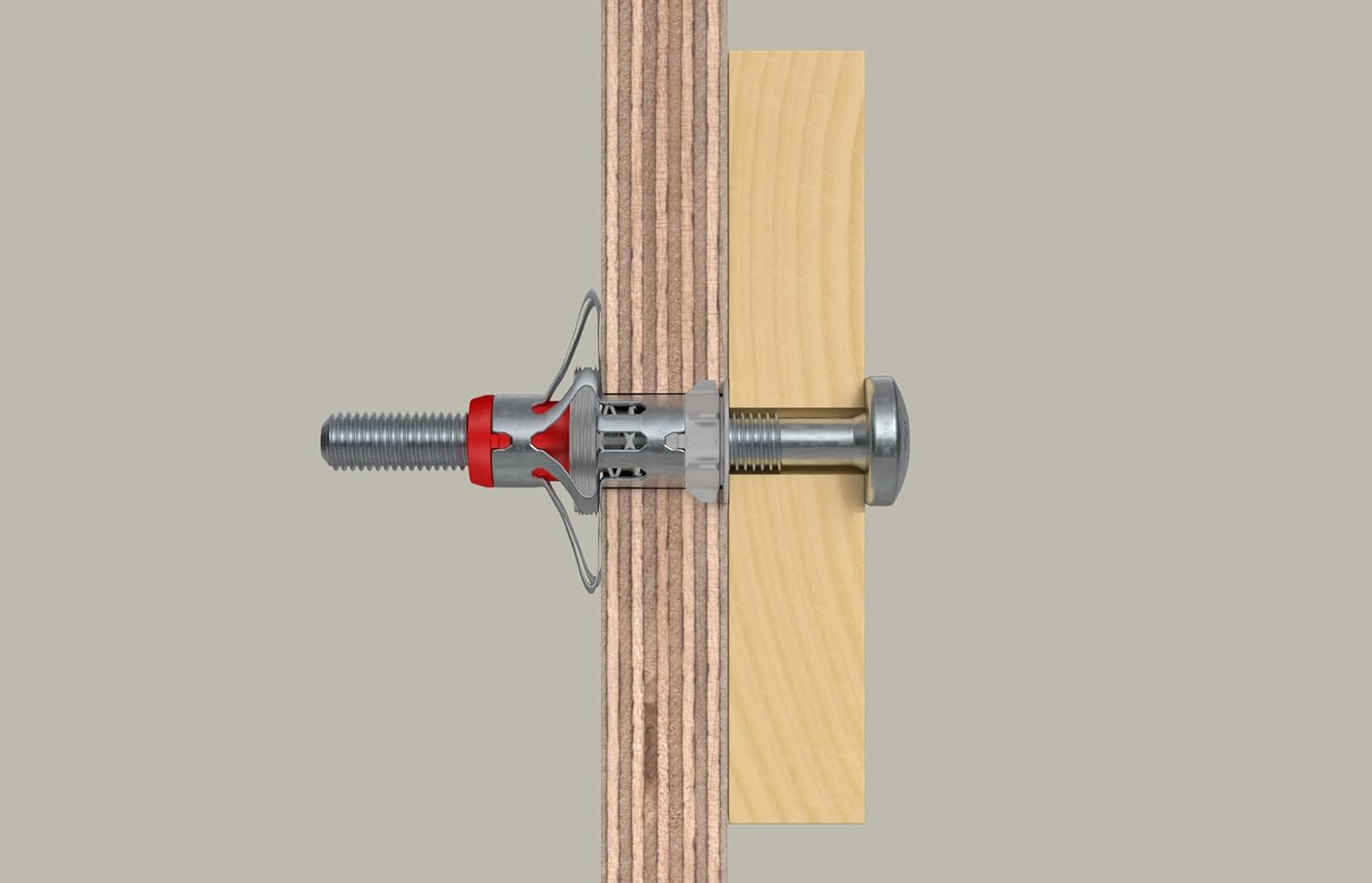 - Aplicaciones: para fijación de imágenes, soportes de TV, lámparas, armarios de espejo, rieles de garaje, subestructuras en placas de yeso y placas de fibra de yeso, paneles ligeros de lana de madera, tableros de partículas y tableros de madera contrachapada.