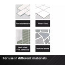 - Versatilidad de uso: Ideales para aplicaciones en áreas como baños, cocinas y superficies alicatadas, tanto en interiores como en exteriores.