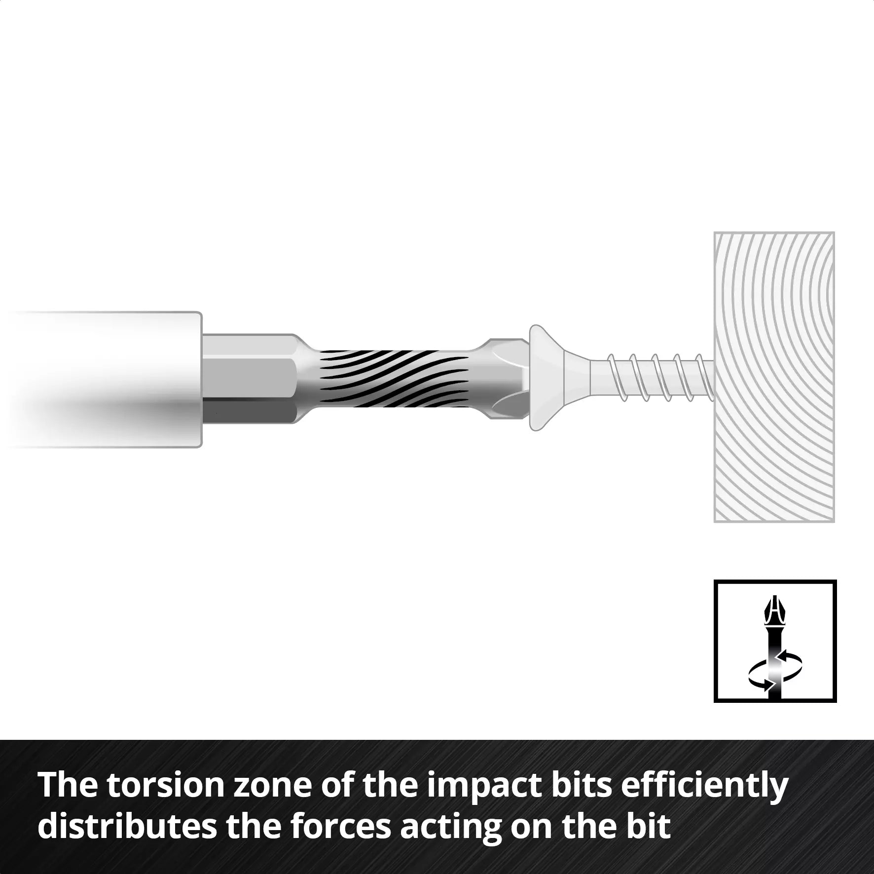 - 32 puntas de impacto de 25 mm con vástago C 6.3, fabricadas en acero S2 fosfatado al manganeso, que ofrecen alta durabilidad y resistencia al desgaste.