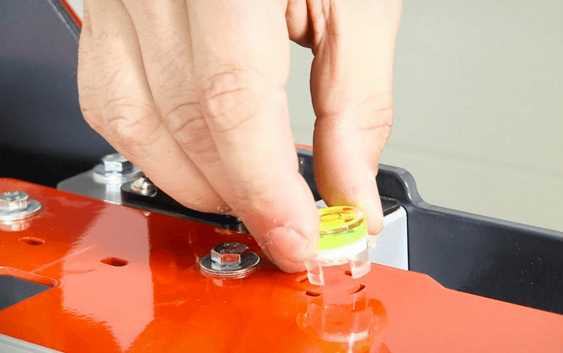 - Nivel de burbuja circular para facilitar el correcto posicionamiento de la cortadora eléctrica.