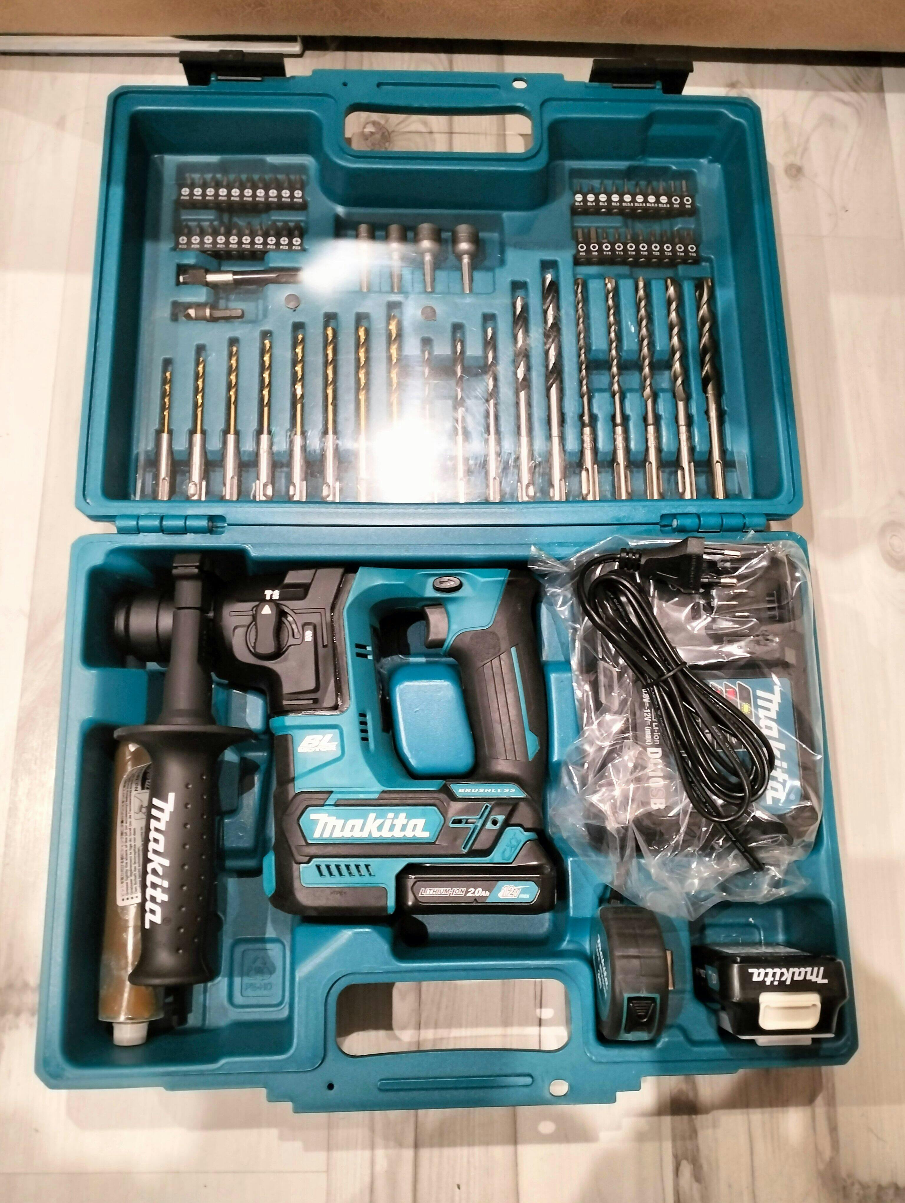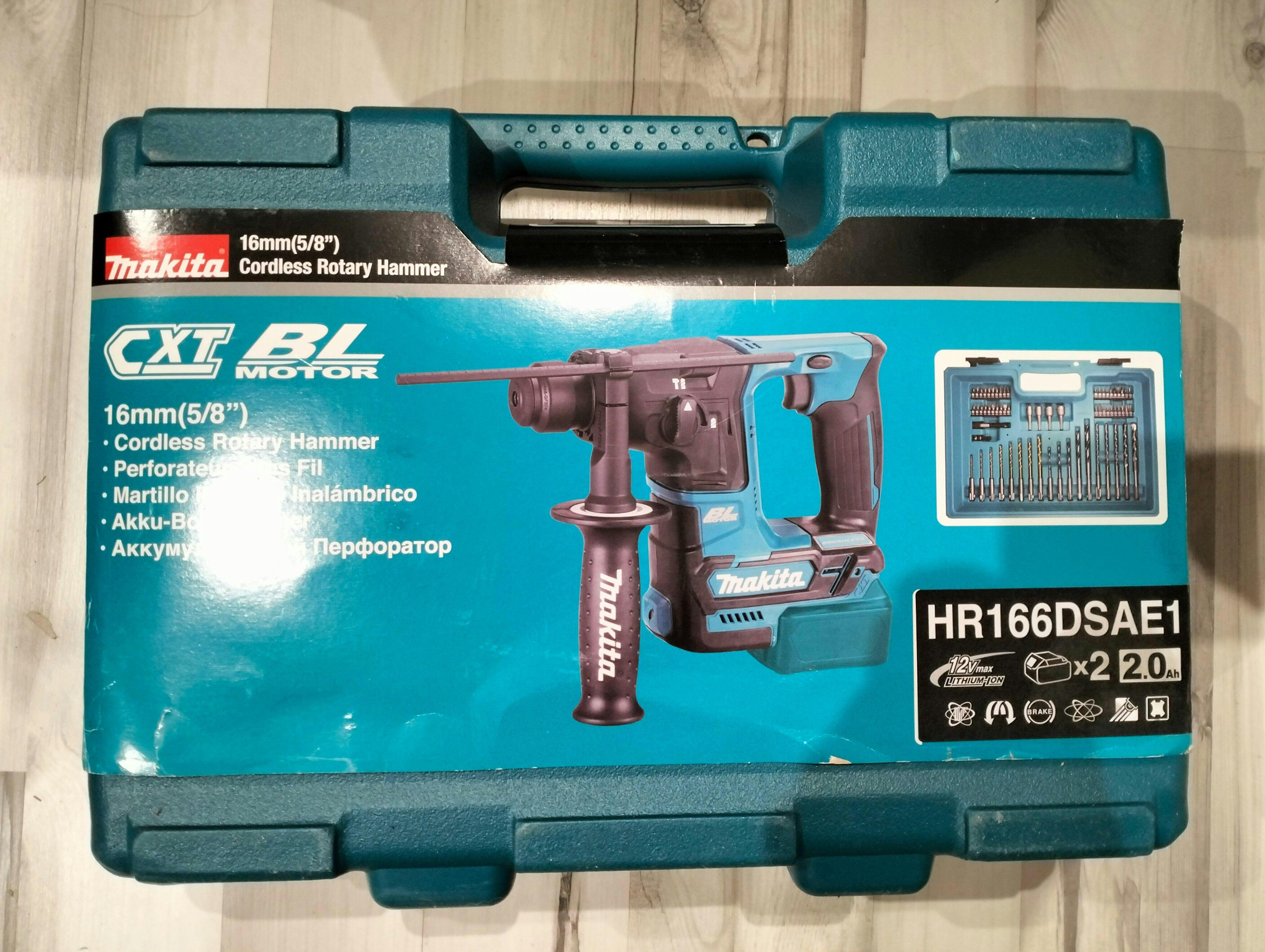 Batteria per martello leggero Makita HR166DSAE1. Il potente motore BL garantisce maggiore efficienza e prestazioni, riducendo l'attrito e il riscaldamento del motore. Corpo diviso in due parti che riduce notevolmente le vibrazioni.